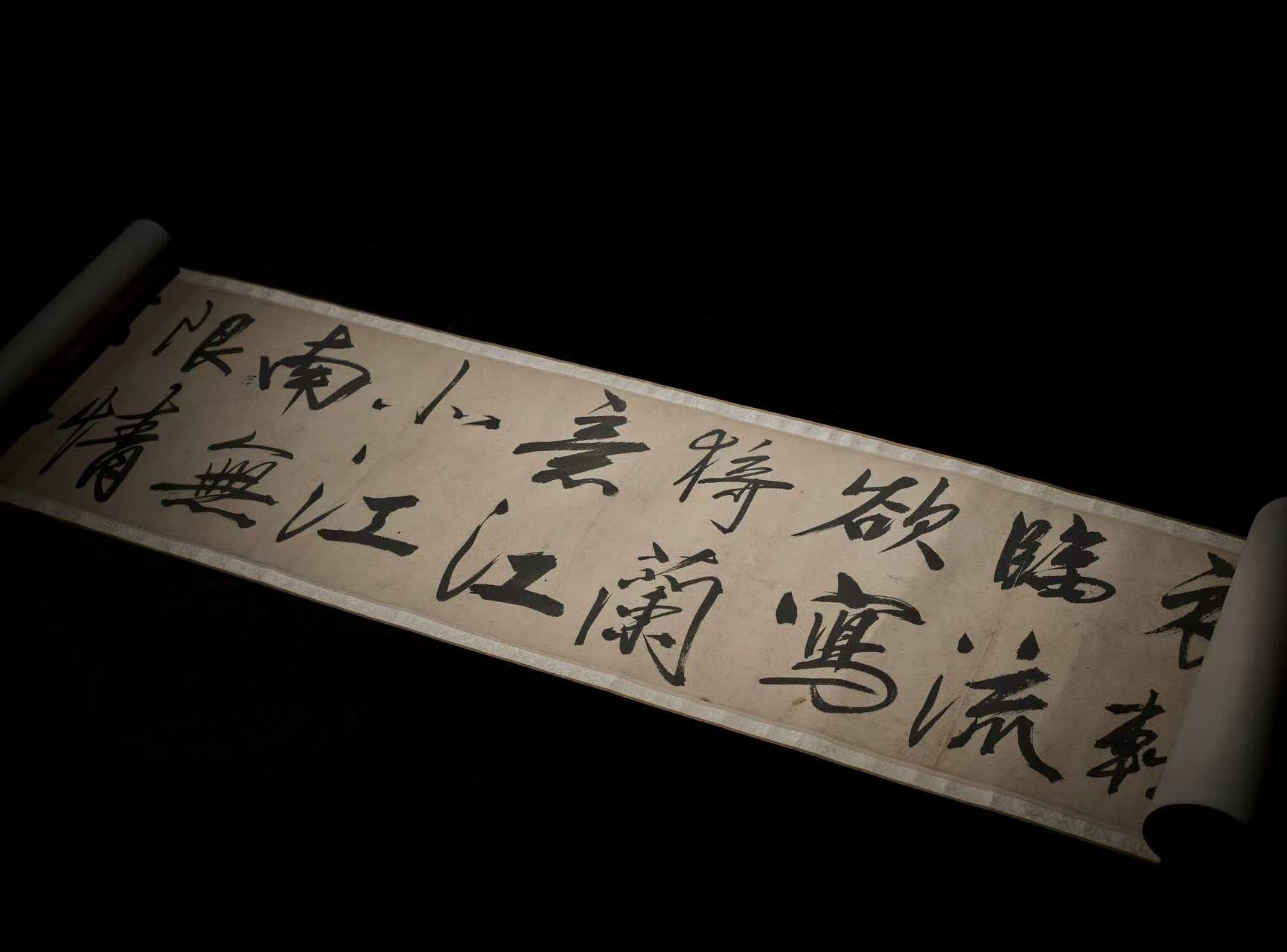 今次佳士得春拍書畫板塊中特別受到市場關注的,亦有一件王陽明自書詩卷——《行書七律兩首》,拍前估價為600萬到1200萬港幣。預展現場可見,該作全長八米有餘,字大如拳。書錄兩首七言律詩,據介紹,此卷書寫年限為1521年,是陽明晚年力作,可惜前人裝裱時誤將第一首詩字句,錯置於第二首詩之間。但幸好披覽全卷,仍舊可見紙張痕跡,可證實是裱工之誤。
