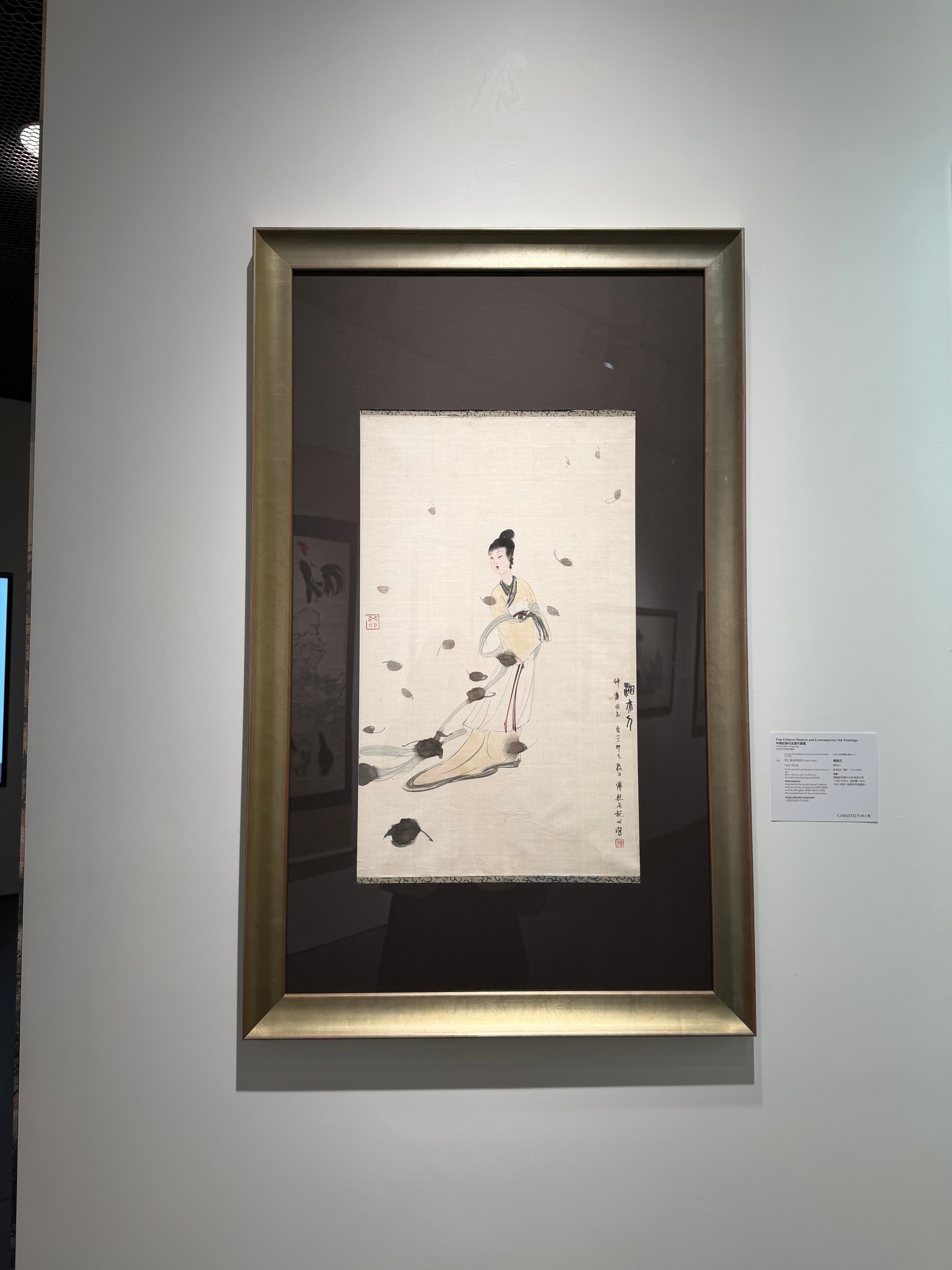 另一件傅抱石同場亮相的作品《湘夫人》,估價300萬到600萬港幣。據介紹,傅抱石「湘夫人」的題材源自於屈原《九歌·湘夫人》辭意,在抗戰的特殊歷史背景下應運而生,並延續貫穿其藝術生涯。