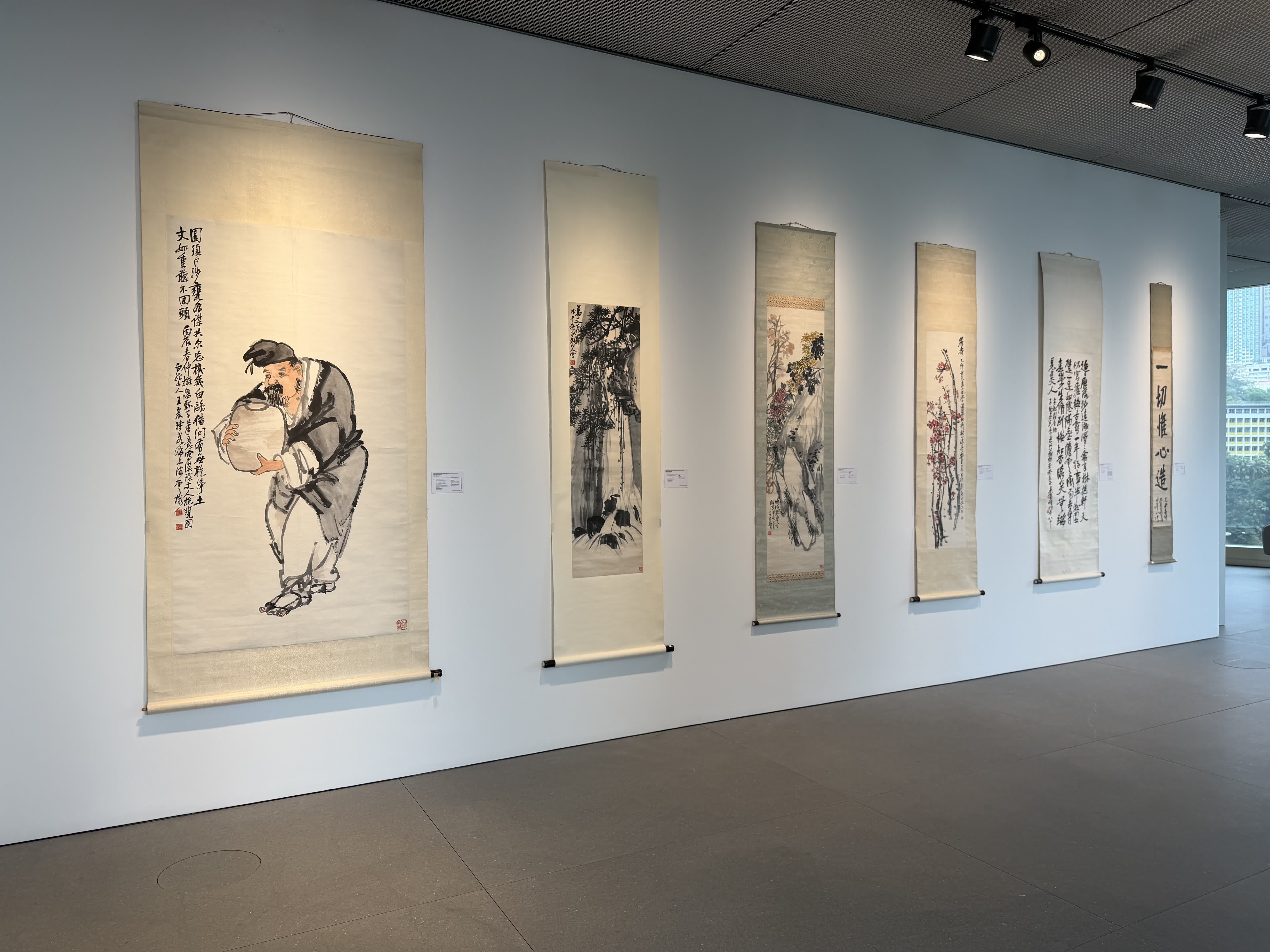 同場亦有一件五十萬卷樓舊藏的黃賓虹《多蔭書屋圖》。據悉,藏家是名醫莫培樾,是廣東省東莞麻湧莫氏第二十九代後人,亦是著名藏書家、「五十萬卷樓」主人莫伯驥之子。專家解析,本幅《多蔭書屋圖》構圖疏朗,尤見生活氣息:白牆虛亭、湖石短几與紅葉盆栽錯落成趣;常綠喬木與梧桐相映成景。樓上二人對坐披卷,如父子清晝論書的靜好片刻。庭院中盆景與植栽之安排,亦呼應莫培樾喜愛園藝的生活習慣。」黃賓虹曾在信中要求索畫者『暇中得以簡筆鉤勒林巒泉石房宇結構寄示,拙筆當為圖』足見他為友作畫,往往力求呈現實景的特性。」