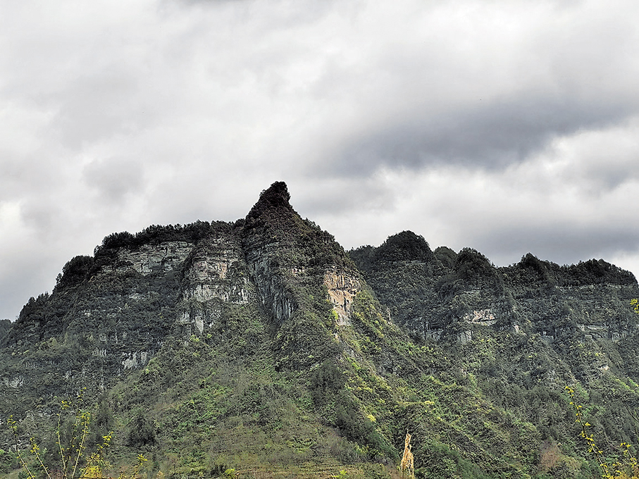 老鷹嘴,大約是我最熟悉的一座山了。山腳下出生,山腳下成長,直到21歲離開家鄉。這座形似雄鷹的大山位於石會鎮東部,由左右鋪展、前後重疊的一組山峰構成。主峰在前,居中而立,高聳入雲,峰巔彎曲尖銳似雄鷹之喙。兩座稍小的山峰立於主峰前側,儼然有力的雙腿,與一片山坡緊緊相擁,構成雄鷹壯碩的身軀。主峰兩側峰巒綿延,如鷹之雙翼,展翅欲飛。