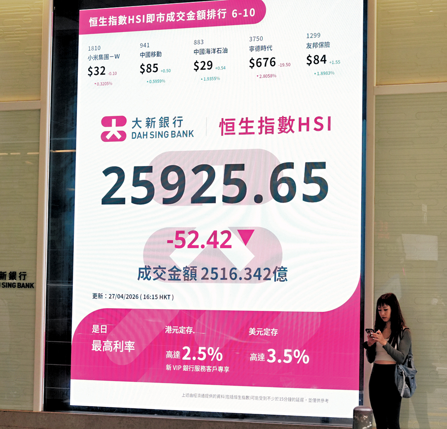 市場繼續關注中東局勢及美息走向,聯儲局將於香港時間周四(30日)凌晨公布議息結果,市場料息口保持不變的機會大。港股則跌52點,收報25,925點,成交2,517億元。景順全球研究主管Benjamin Jones就中東衝突表示,美伊停火協議在最後一刻獲得延長,符合該行的基本預期。但即使停火協議得以維持,過去一周經霍爾木茲海峽的航運流量並未改善。有跡象顯示,從該地區運出的原油量超出原先預期。全球經濟正透過減緩需求、儲備釋放等方式來應對石油供應短缺問題,一定程度上緩解供需失衡。