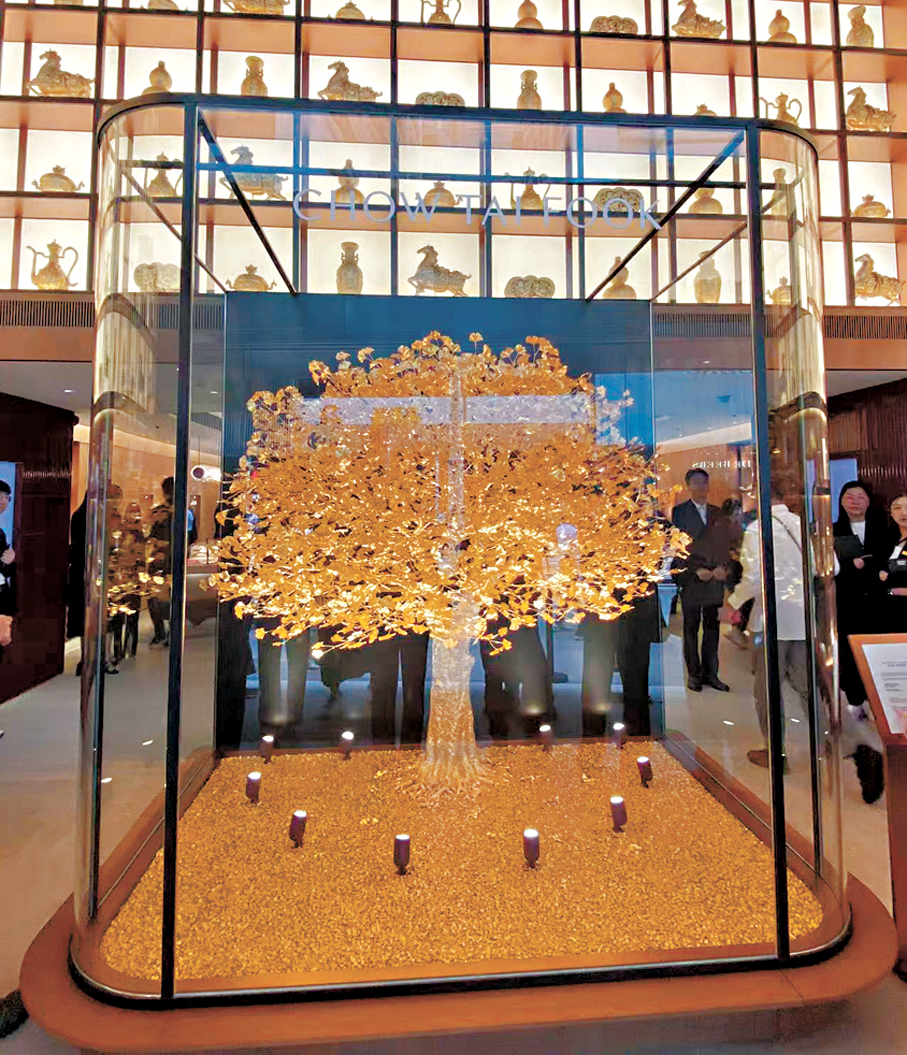 周大福珠寶廣東道旗艦店坐落於全港最具代表性的消費與旅遊熱點,店舖面積約1萬呎,門店正門樹立一棵高2.1米、寬2.3米、懸掛約3,500塊純金樹葉的「黃金銀杏樹」。該黃金銀杏樹於2016年完成製作,重量約40公斤,由集團近50位工匠耗時近6萬小時打造而成。集團指,銀杏樹歷練久遠,象徵堅韌與守護。