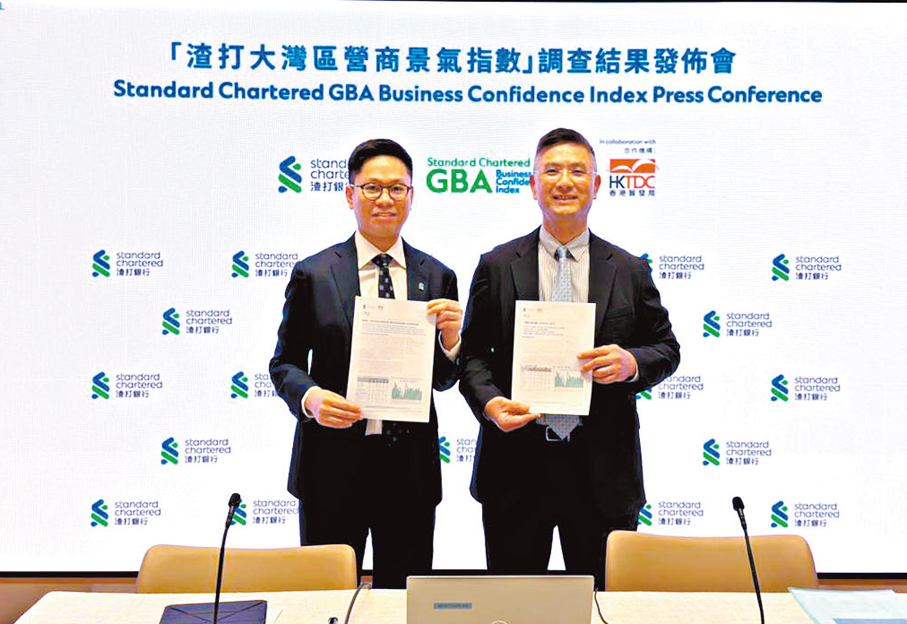 香港文匯報訊(記者 陳鍵行)昨日公布的今年第一季渣打大灣區營商景氣指數(GBAI),若按大灣區城市劃分,香港受訪企業普遍相信本地經濟可保持穩健增長。季內,香港的「現狀」及「預期」兩個子指數雖各自回落至52.7,但仍然處於擴張區間,主要受惠於「金融服務」及「創新和技術」子指數回升。