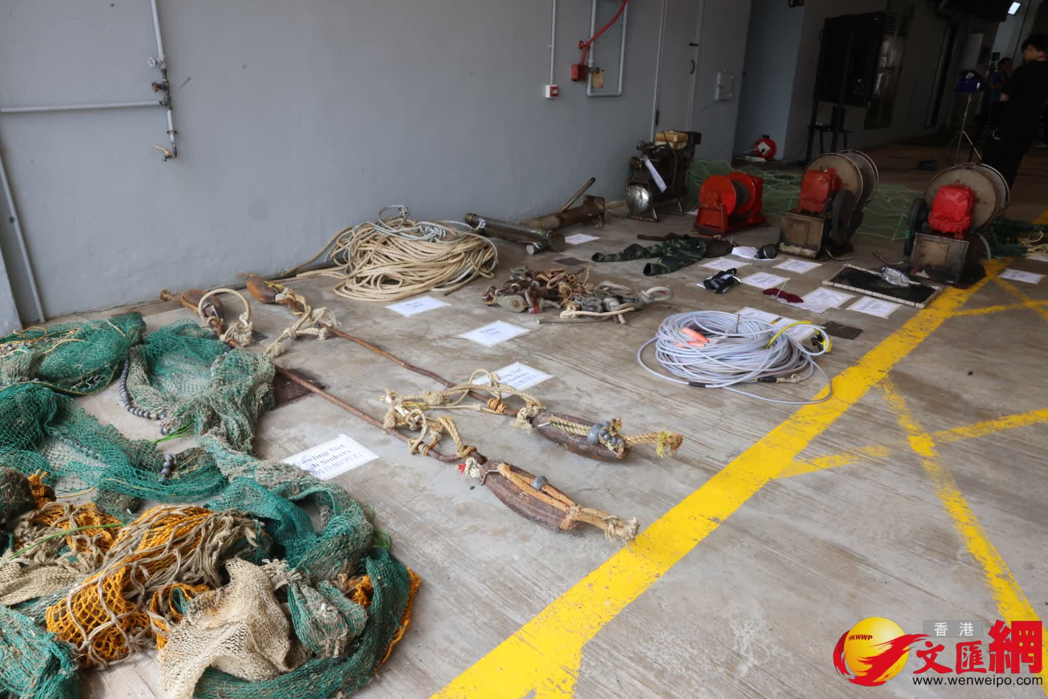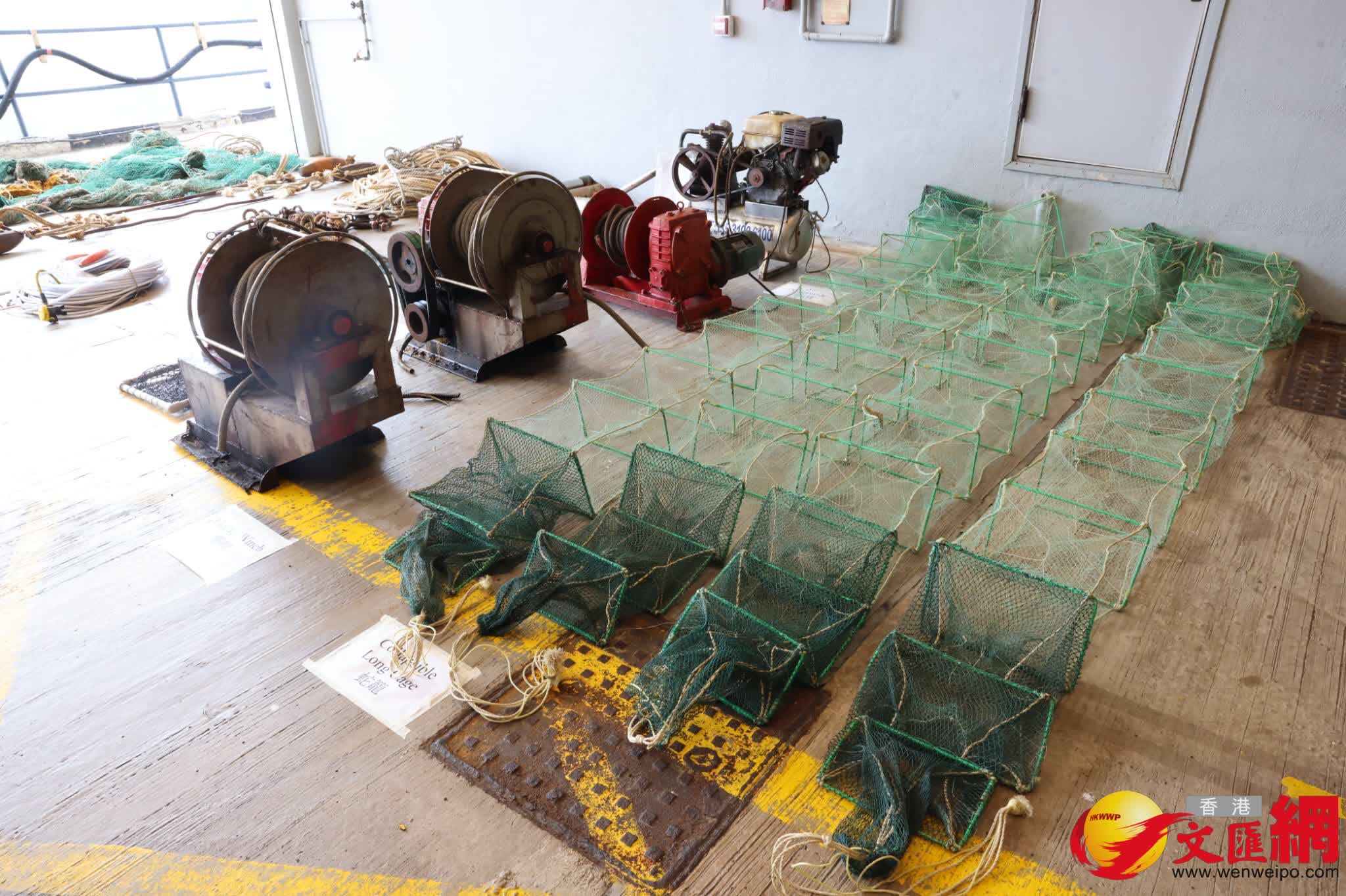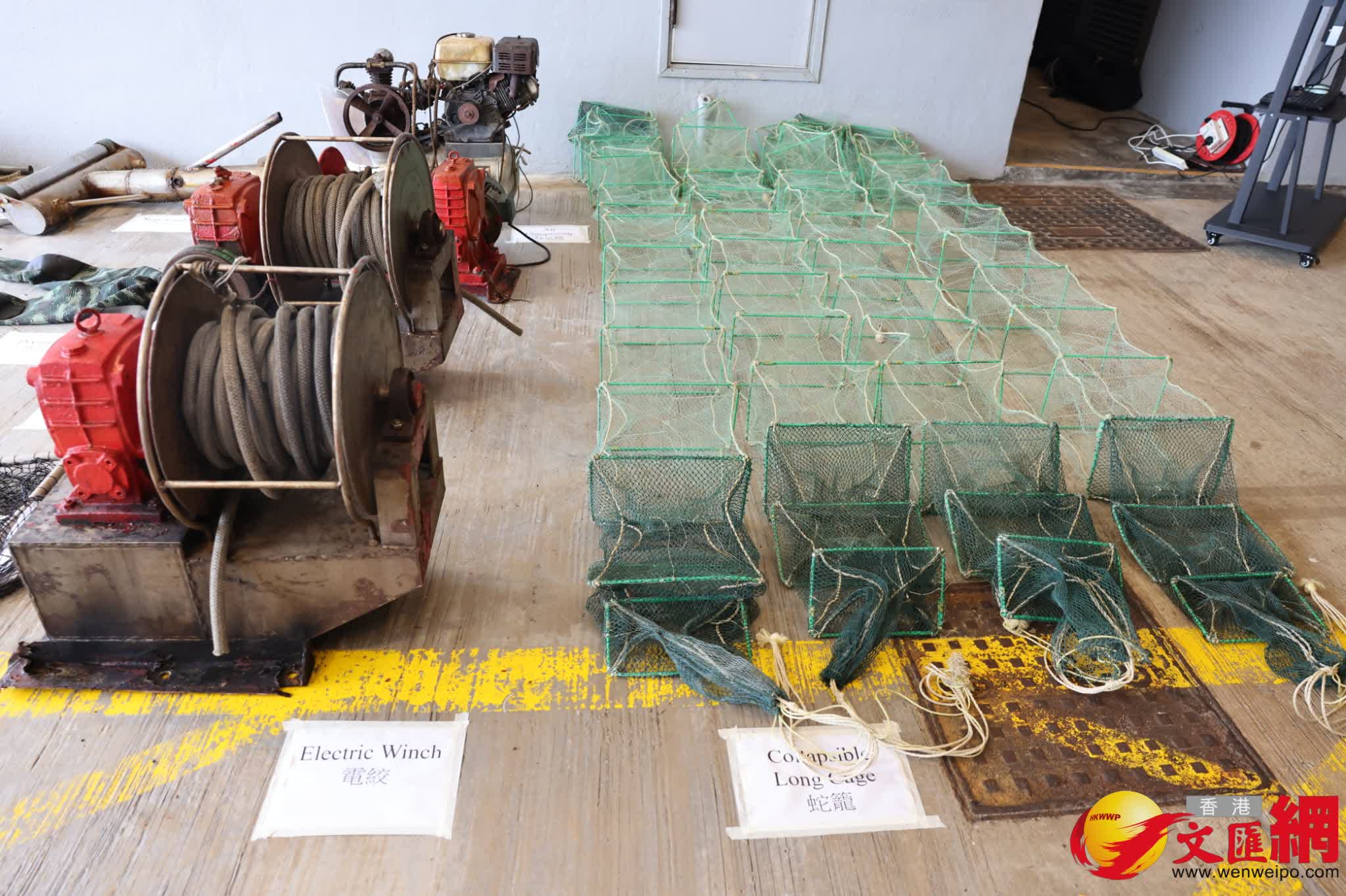 水警南分區助理指揮官(行動)何上仁總督察表示,涉案人士分在中午及晚上進行非法捕魚活動。行動中,人員利用水警輪進行成功攔截執法,並在涉案船隻上檢獲大批非法捕漁工具,包括用作蛇籠捕魚的蛇籠、絞轆及浮泡;潛捕用的打氣機及潛水裝備;拖網捕魚用的漁網、纜繩、蝦實及絞纜波等。相關人士涉嫌使用已被禁止的器具捕魚, 並由漁護署進行檢控。