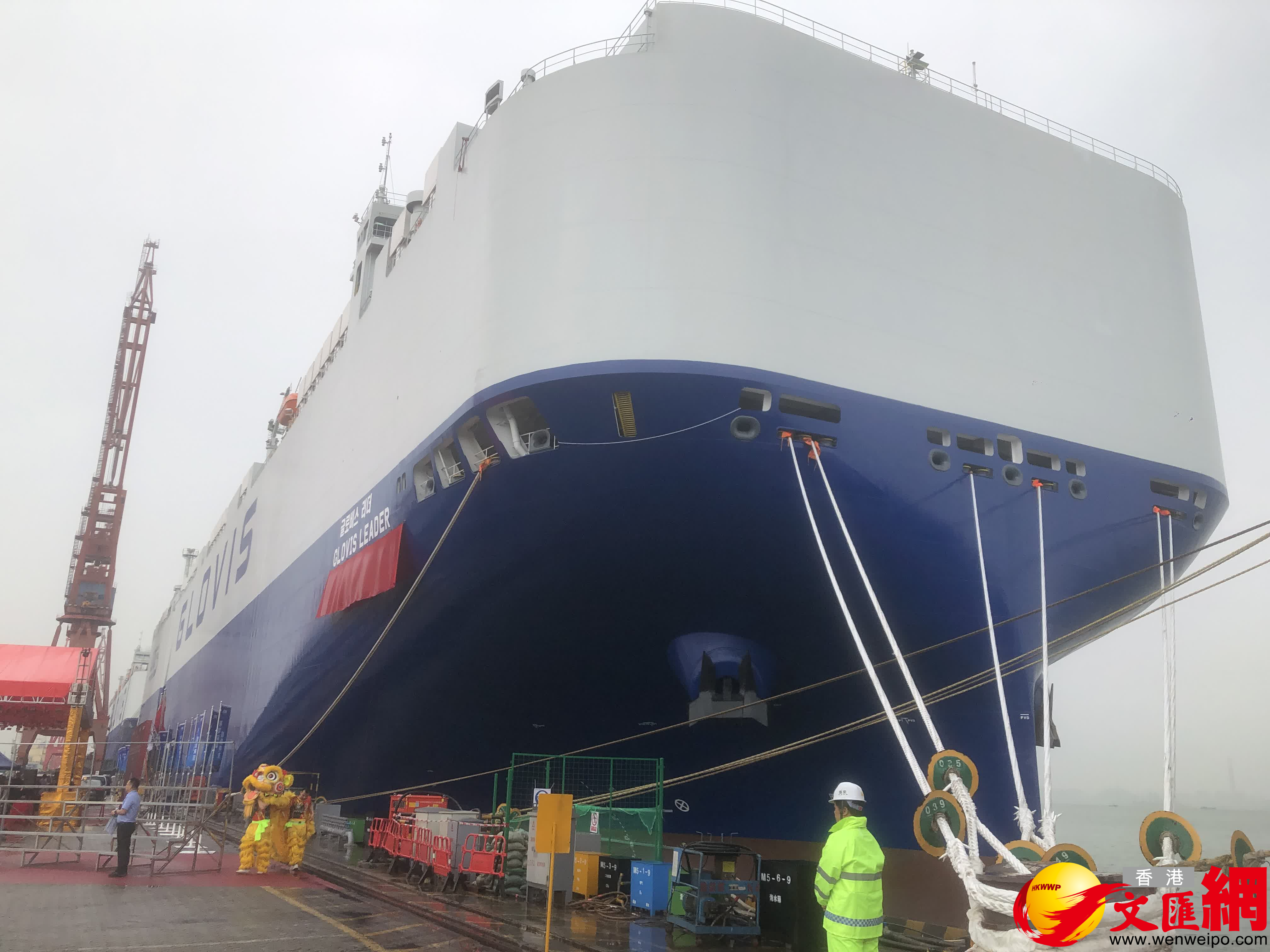 (香港文匯網記者 方俊明)「灣區造」全球首艘萬車級汽車運輸船「格羅唯視 領航」輪今天(28日)在廣州命名交付。建造方中船廣船國際表示,該船單船最大裝車量達10800輛,刷新全球同類船舶運力紀錄。同時,整船配置全液壓驅動系統,多項裝備規模、建造工藝均為行業首創;並搭載了國產軸帶發電機,實現「邊航行邊發電」,滿足航行電力需求;全套超大規格滾裝設備也實現了國產化。這標誌着中國高端船舶製造能力實現新突破,為全球航運業綠色低碳轉型提供了「中國方案」。