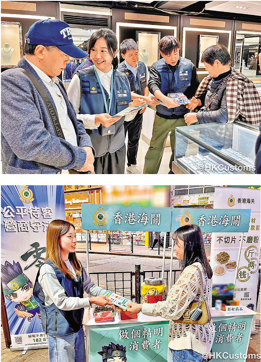 此外,海關還聯同香港旅遊業監管局、消費者委員會開展跨部門協作,包括在旺角及尖沙咀等旅遊熱點進行巡查,檢查商戶計價單位標識是否清晰,提醒其遵守《商品說明條例》。海關亦與旅監局合作宣傳防騙知識,並通過消委會建立資訊互換機制,及時共享旅客投訴線索。