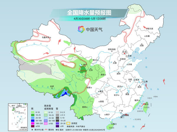 具體來看,明天,內蒙古東北部、黑龍江西北部、西藏北部和西部、青海南部和西部等地部分地區有小雪或雨夾雪。西藏東南部、青海東部、雲南西部等地部分地區有中到大雨,其中,西藏東南部等地部分地區有暴雨。