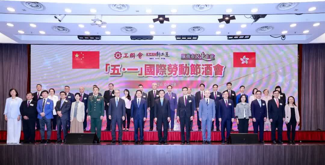 4月28日,香港工聯會舉辦慶祝「五一」國際勞動節酒會。香港特別行政區行政長官李家超、中央政府駐港聯絡辦主任周霽應邀出席,並與駐港國家安全公署、外交部駐港特派員公署、中國人民解放軍駐香港部隊有關負責同志等共同主禮。香港工會組織、勞動者代表等社會各界人士逾800人出席。