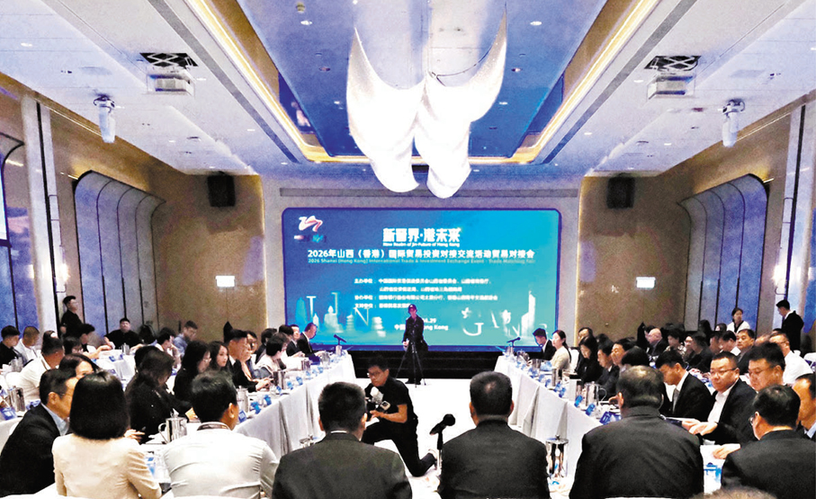 「2026年山西(香港)國際貿易投資對接交流活動貿易對接會」昨日在港舉辦,就晉港產業投資、經貿合作等展開深入洽談,並現場達成多項合作意向。商經局副局長陳百里昨日出席對接會致辭時表示,香港作為國際金融、航運及貿易中心,憑藉其自由流通的「人流、物流、資金流、信息流」及穩健的制度基礎,有能力擔當「引進來、走出去」的雙向服務平台,協助山西企業與產品對接國際市場,同時吸引國際資本參與山西建設。 ●香港文匯報記者 孫曉旭