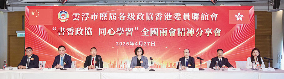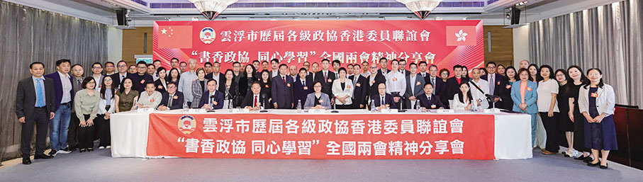 4月27日,雲浮市歷屆各級政協香港委員聯誼會假美麗華酒店舉辦「書香政協‧同心學習」全國兩會精神分享會暨年度會員大會。該會常務副會長劉卓琳擔任主持,雲浮市政協常委、立法會議員陳宗彝作分享發言,會長莊碩傳達省、市兩會精神以及省、市高質量發展大會精神,雲浮市政協主席梁麗嫻和副主席梁紹雄分別講話及通報雲浮市政協近年工作情況。