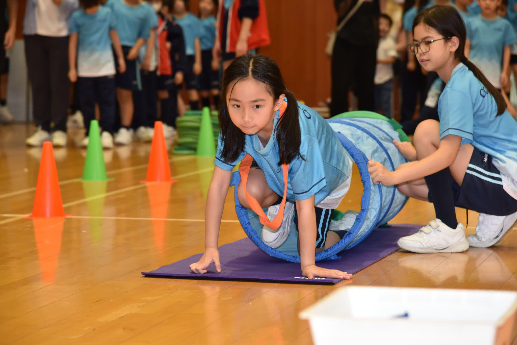 至於班際競技部分,「時光隧道」結合爬行與投擲,讓孩子在身體協調之外,也練習等待與秩序;班際及校際接力跑更把「交棒」變成具體的合作課:如何觀察、如何提醒、如何在輪到自己時全力以赴,都是孩子在運動場上自然學會的能力。其後的親子遊戲環節,如「齊齊跳」與「開心傘」則把家長和學生拉到同一節拍上,讓笑聲成為最好的鼓勵,也讓參與者在輕鬆互動中加深連結。