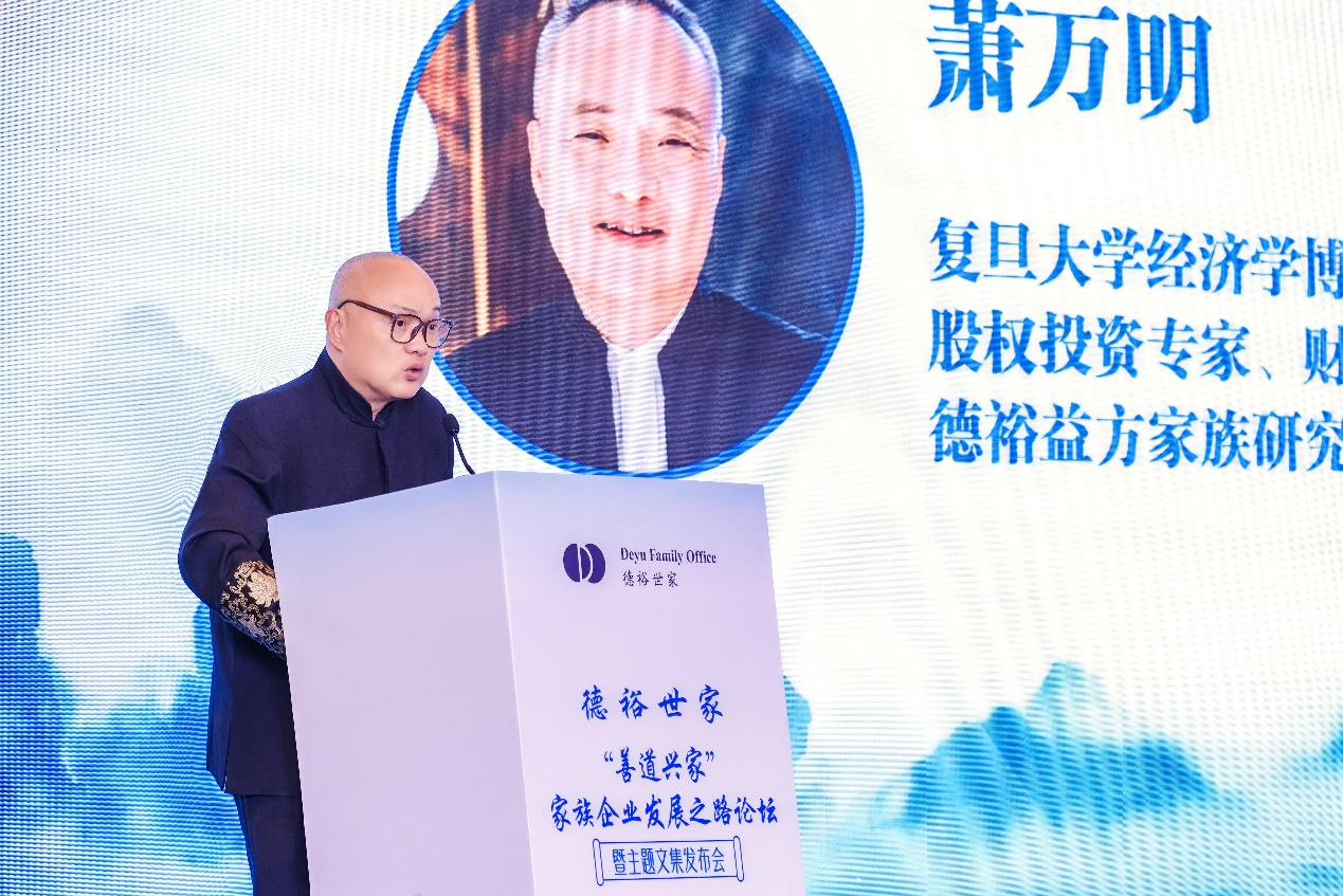 發布儀式後,德裕益方家族研究院執行院長、復旦大學經濟學博士、股權投資專家蕭萬明博士,以《緣起·感恩·願望·同行》為題作主題分享,深度解讀文集創作初心與編纂歷程。他回顧研究院六年深耕之路,從歷年行業調研報告、全球家辦研究成果,到本次文集的落地成型,全面展現研究院扎根行業、專注家族傳承的研究堅守。