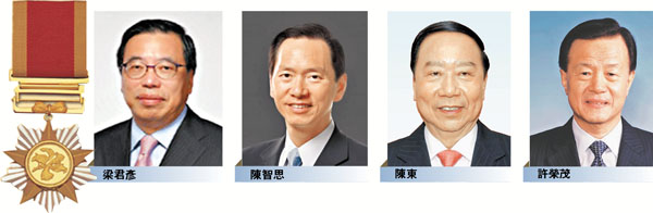 為港貢獻殊深 4賢膺大紫荊