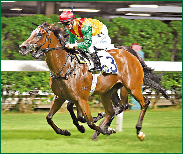 (第二場)「日日靚」剛戰季內初出在谷草千二米姍姍來遲下跑得殿軍是輸路短,熱身後折返一戰即勝成名地可收復前失。
