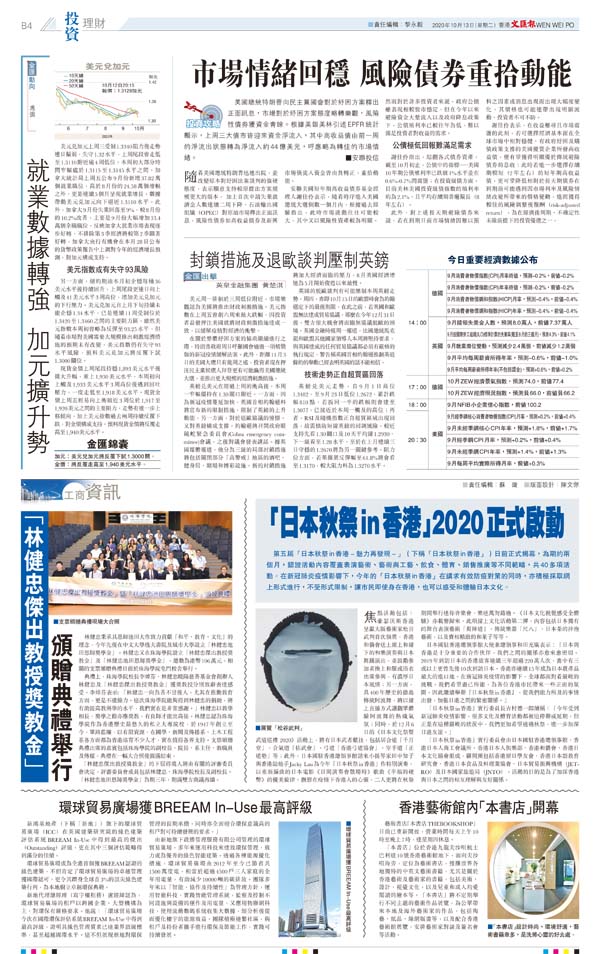 第五屆「日本秋祭in香港-魅力再發現-」(下稱「日本秋祭in香港」)日前正式揭幕,為期約兩個月,認證活動內容覆蓋表演藝術、藝術與工藝、飲食、體育、銷售推廣等不同範疇,共40多項活動。在新冠肺炎疫情影響下,今年的「日本秋祭in香港」在講求有效防疫對策的同時,亦積極採取網上形式進行,不受形式限制,讓市民即使身在香港,也可以感受和體驗日本文化。