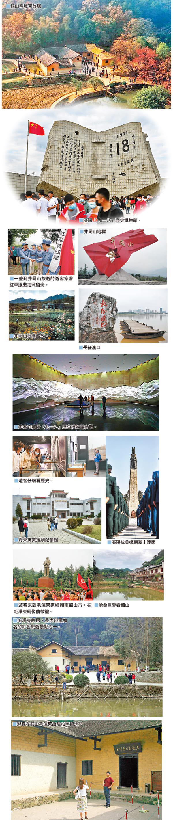 早前,內地一連八天的國慶假期,疫情下不少人選擇了來一趟紅色旅遊,人們高漲的愛國熱情,加上各地推出一系列獨具特色的活動,使得紅色旅遊成為這個假期出遊的熱門主題。的確,內地紅色旅遊景點眾多,如滬浙、湘贛閩、左右江、黔北黔西、雪山草地、陝甘寧、東北、魯蘇皖、大別山、太行、川陝渝、京津冀等紅色旅遊區,遍布全中國各地,疫後大家不妨按喜好選擇,從這些景點遊覽中,深入認識領導人的故里、東北抗日聯軍等事跡,冀望港人從旅遊中回顧歷史,感受愛國之心與緬懷之情。