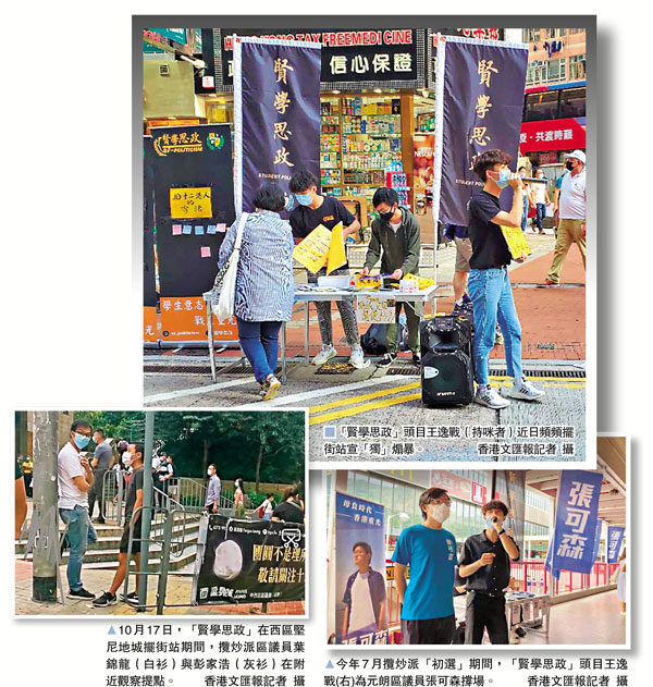 泰國近期發生反政府事件,香港的攬炒派如同「打了雞血」異常亢奮,紛紛大肆渲染。香港文匯報記者發現,一個自稱無政黨背景、並號稱是學生組織的「賢學思政」,在剛過去的周六周日突然高調在港九多地以舉辦圖片展名義擺街站,並藉泰國時下的反政府示威活動煽暴播「獨」,更宣稱「香港民族」要「輸出革命」。記者調查發現,「賢學思政」與攬炒派關係密切,過往曾為攬炒派的初選撐場,而近期所開設的街站都有攬炒派在幕後操作,一些攬炒派活躍分子更在現場指揮。 ■香港文匯報記者 張得民、齊正之