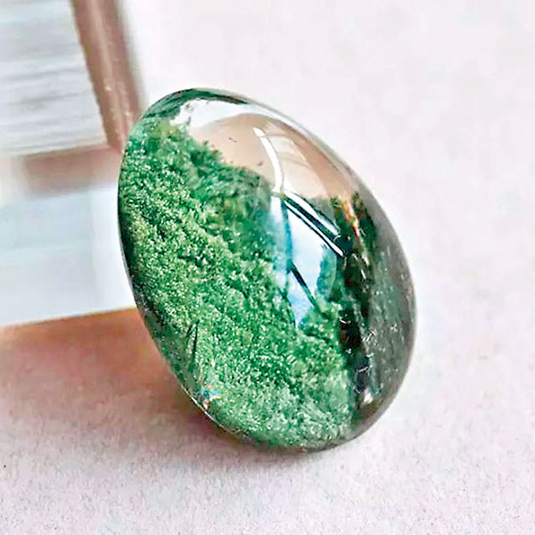 綠水晶,水晶的一種,主要化學成分是二氧化硅,化學式為SiO2,因內含鎂鐵化合物而呈現綠色,產量稀少,現市面上多為人造綠水晶。