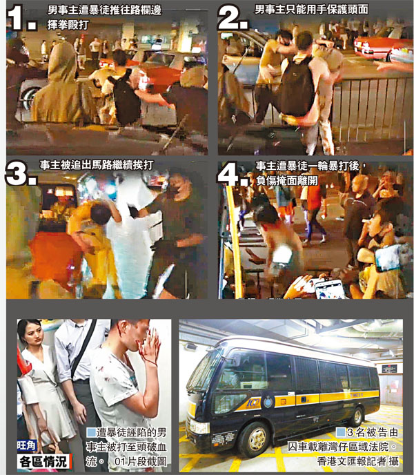 去年10月5日,大批反蒙面法黑衣魔在旺角通宵打砸燒,濫用私刑毆打市民。一名內地男遊客和一名清路障本地男子,分別被暴徒「老屈」拍攝「大頭相」及「便衣警」,慘遭圍毆。參與襲擊的兩男一女早前在區域法院承認傷人等罪名後,其中57歲清潔工被判監4年,另兩人判監15個月。法官郭啟安指被告出於憎恨內地人和仇警而犯案,罪行醜陋如惡棍,而利用私刑履行公義必然不會被接納,否則行為將與黑社會、惡霸無異,法庭有責任維護法律同公義,絕不容許私刑。 ■香港文匯報記者 葛婷