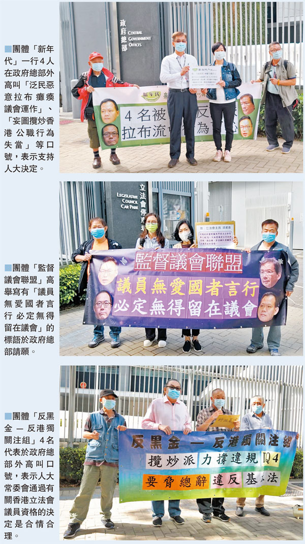 香港文匯報訊 香港多個團體昨日到政府總部遞交請願信,支持人大常委會決定和DQ攬炒議員。