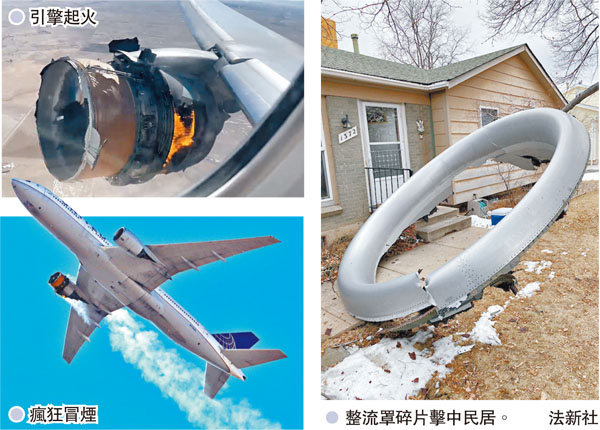 聯航客機引擎爆炸 碎片砸民居屋頂穿1.5米窿