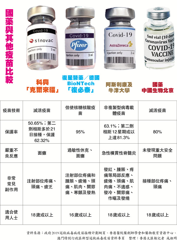 面對全球疫苗供應緊張,有醫學界和藥劑界人士建議購入更多疫苗,例如與「克爾來福」疫苗使用同一技術的國藥疫苗。食物及衞生局局長陳肇始表示,政府早前宣布3款疫苗的採購協議,包括「復必泰」、「克爾來福」和阿斯利康疫苗,每個協議都會購買750萬劑疫苗。