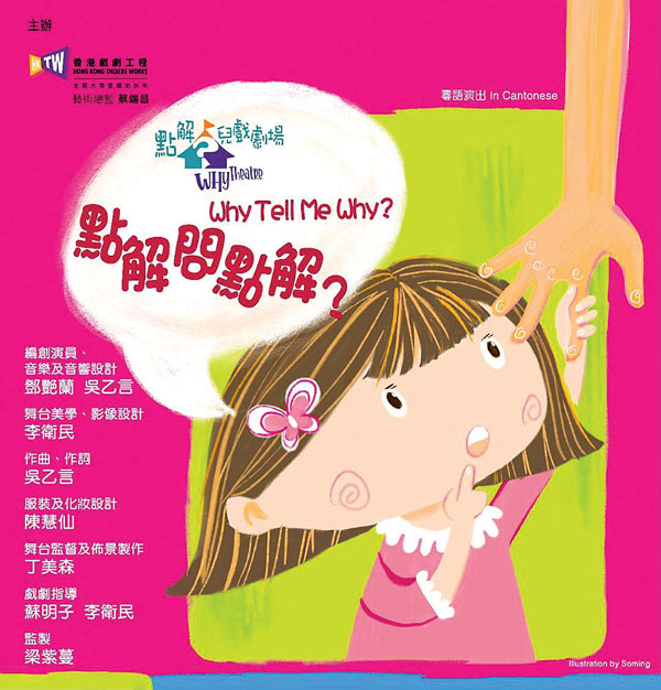 香港戲劇工程的蔡錫昌總監,在舞台上屢屢有新作,而他監製之兒童劇,常環繞童真和初心的主題,令我難忘。他之前有多次重演及好評的《小王子》,讓小觀眾領悟用心來感受所愛的一切。近月他推出新兒童劇系列「點解兒戲」:《點解問點解?》(見圖)及《聽心的孩子》兩劇,選材獨到,能把思考、想法、心思這些抽象概念,以動態、形象,具體於舞台上呈現,把很多我們平常看來感到平平無奇的生活細節,以劇場活動手法,在舞台上及互動中為親子帶來新鮮感,重新勾起大家對生活的熱情,提醒大小朋友重拾與生俱來的好奇心,又可培養小孩敏銳的觀察和愛發問的習慣。