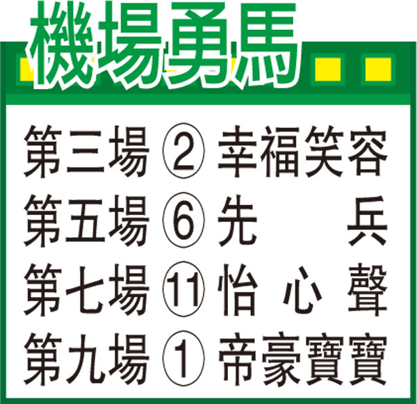 「先兵」助手踱,沿途灑開大步前進,馬身恰到好處,步頭爽朗朝氣勃勃,毛色油潤立立令,狀態及進度一日千里。