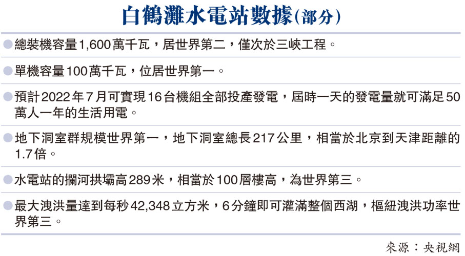 香港文匯報訊 綜合新華社及央視新聞報道,世界在建規模最大的水電站——白鶴灘水電站大壩於2017年4月開始澆築,經過近50個月的建設,5月31日實現全線澆築到頂,大壩主體完工,為2021年7月前首批機組投產發電奠定了堅實基礎。
