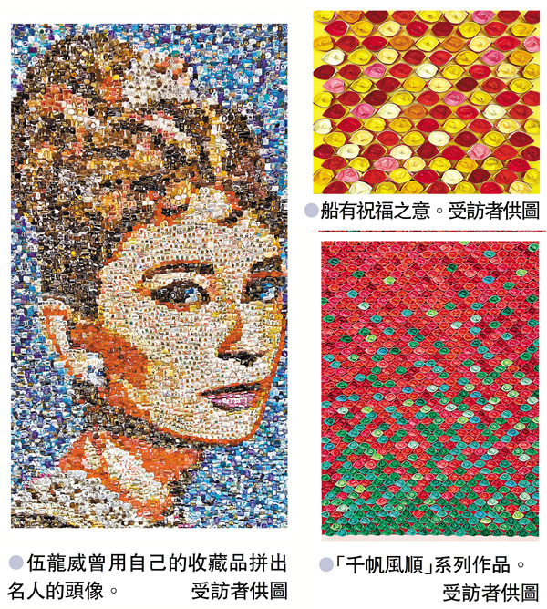 由摺小船到摺衣服,意念就在創作時進入冥想期間漸漸滋長,一切看來如此自然;就如伍龍威由建築師到成為全職藝術家,也是如此率性。建築師的理性與藝術家的感性潛藏於同一身體內,兩者未必互相排斥,反能碰撞擦出火花。伍龍威畢業於中大建築系,曾於建築師樓工作,為了追求更大的創作空間,轉換軌道從事室內設計工作,卻發現掣肘仍然很多,後來索性自立門戶,為本地博物館進行展覽設計。過程中,他從不同的項目裏汲取了各個領域的知識,既要對展品背後的故事細嚼慢咽,隨後要讓故事展現得活靈活現,過程中對設計與美學的種種思考,成為他日後進行藝術創作的養分。多年來他一直為別人辦展覽,及後完成深水埗美荷樓的項目後,他希望能辦自己的展覽,因此,2013年,他決意成為全職藝術家。本身喜愛收藏舊物的他,在首個展覽便用自己的藏品如火柴盒、針章等物件砌出名人的頭像。