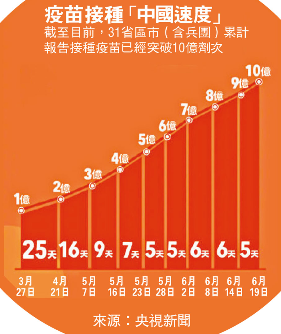 內地接種破10億劑 料兩月築免疫屏障