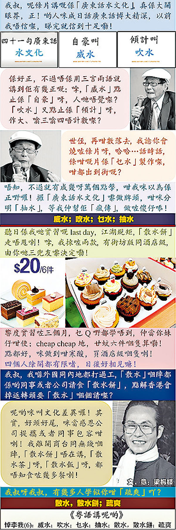 【粵語講呢啲】悼李我(6):威水;吹水;乜水;抽水;散水,散水餅;疏爽