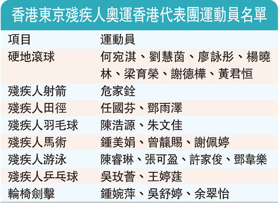 香港東京殘疾人奧運香港代表團運動員名單