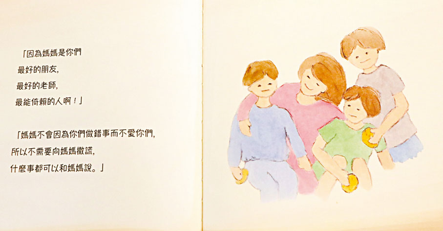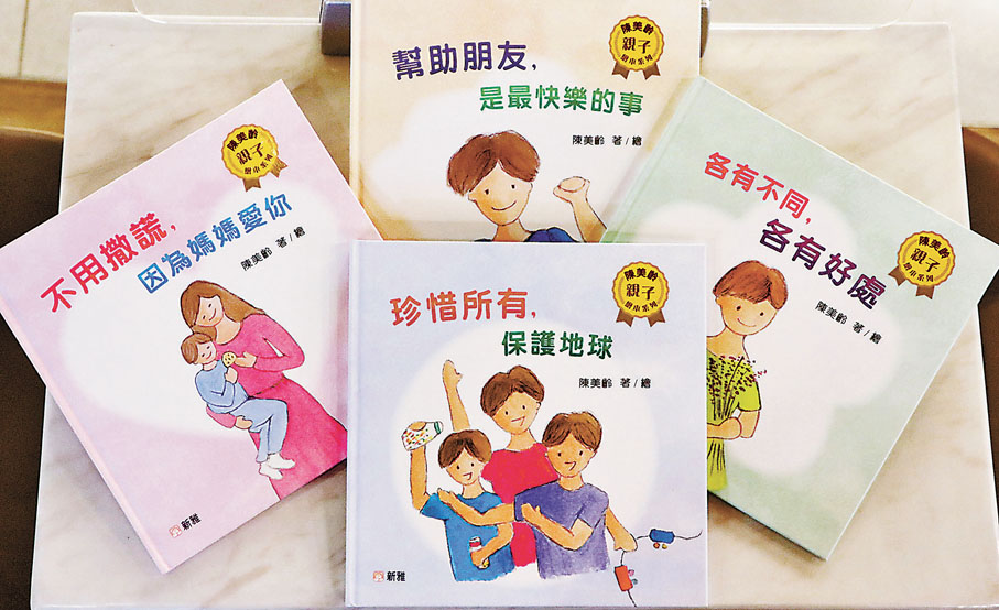 陳美齡介紹四冊繪本的不同內容,她說:「比如媽媽對你的愛是不會變的,所以不用害怕去做一個誠實的人;或者是如何做一個快樂的人?其實是沒有方程式的,但有一件事你做了一定會快樂,就是幫助人。」她希望通過一些簡單和輕鬆的故事讓小朋友領悟到這些淺顯卻重要的道理,「接受差異也是我提出的重要特質,就算別人和你不同,也要珍惜和尊重別人,差異是一件好事。」同時,她覺得保護地球的環保主題,除了讓小朋友接收到信號之外,她也是在和父母們「眨眼睛」,因為環境的保護是全人類的共同責任。