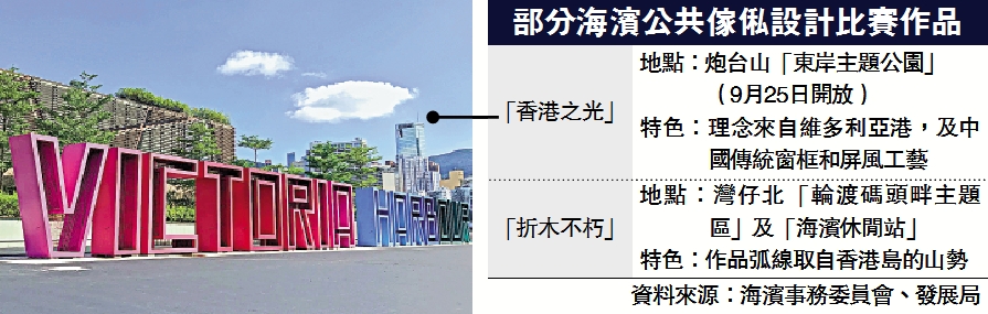 【大公報訊】實習記者王香安報道:在炮台山的「東岸主題公園區」將於本月25日開放,在海濱事務委員會去年設計比賽獲獎的巨型發光英文字型作品「香港之光」,屆時將會展出,成為海濱最新打卡位。