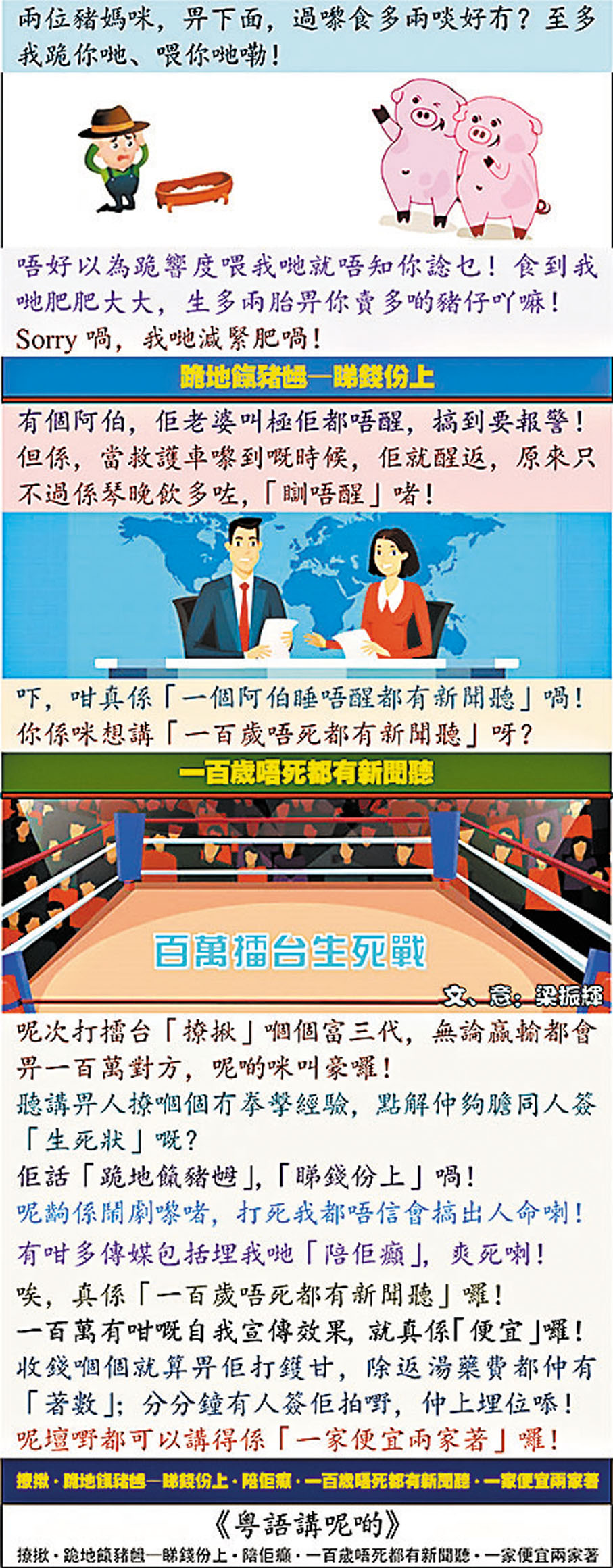 【粵語講呢啲】撩揪·跪地餼豬乸—睇錢份上·陪佢癲·一百歲唔死都有新聞聽·一家便宜兩家着