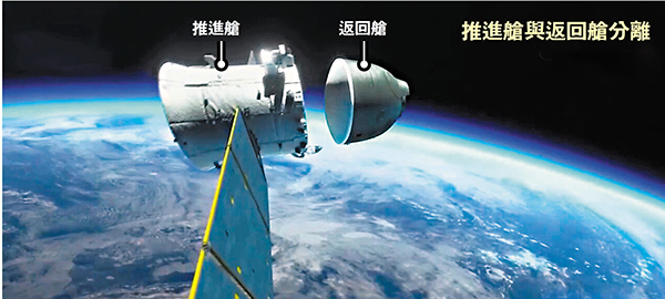 16日9時許,神舟十二號載人飛船與太空站天和核心艙成功實施分離,三名航天員隨後乘坐神舟十二號飛船與太空站組合體完成繞飛及徑向交會試驗,成功驗證了徑向交會技術,正式踏上回家的旅程。17日12時43分,北京航天飛行控制中心通過地面測控站發出返回指令,神舟十二號載人飛船軌道艙與返回艙成功分離。此後,飛船返回制動發動機點火,返回艙與推進艙分離。