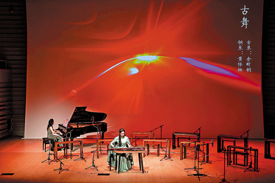 樂器混搭延展古琴演奏多樣性。由香港學子余昕桐與香港鋼琴演奏家黃依楠帶來的古琴鋼琴二重奏《古舞》,贏得現場觀眾的陣陣掌聲。《古舞》是作曲家王建民教授由參觀雲岡石窟獲得創作靈感,意在重現古代宮廷樂舞的場景和盛況。《古舞》的創作採用極具技巧難度的舞蹈性節奏,對演奏者的表現技巧和配合度提出了更高要求。兩位表演者注重調性的巧妙融合與轉換,演奏相得益彰,掀起了本場音樂會的一個小高潮。除了與其他樂器的協奏,實現多床古琴合奏也是王悠荻試圖拓展的演奏形式。本場音樂會上,由王悠荻古琴藝術團帶來的《梅花三弄》在樂曲變化處理上也別具新意,展現了古琴樂器的可塑性。「我們希望通過創新性的探索,讓古琴表現形式有更多想像力。」王悠荻說,年輕一代古琴演奏家不僅要注重傳承,也要去展現古琴在當代更豐富多彩生命力,才能有更多群體愛上中國這種最古老的樂器。