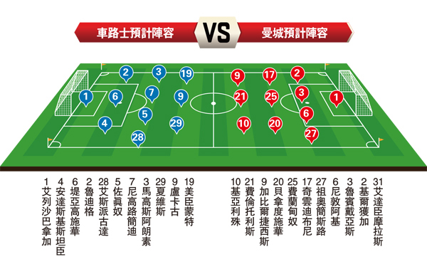 英超於今晚早場上演矚目大戰,由「藍戰士」車路士於主場迎戰「藍月亮」曼城。兩軍均是今季爭冠熱門球隊,但以季初表現而言,「藍戰士」表現明顯較佳,加上「藍月亮」近期受到傷兵、把握力不足等問題困擾,衡量後車路士可以看高一線。(now611及621台今晚7:30p.m.直播) ●香港文匯報記者 楊浩然