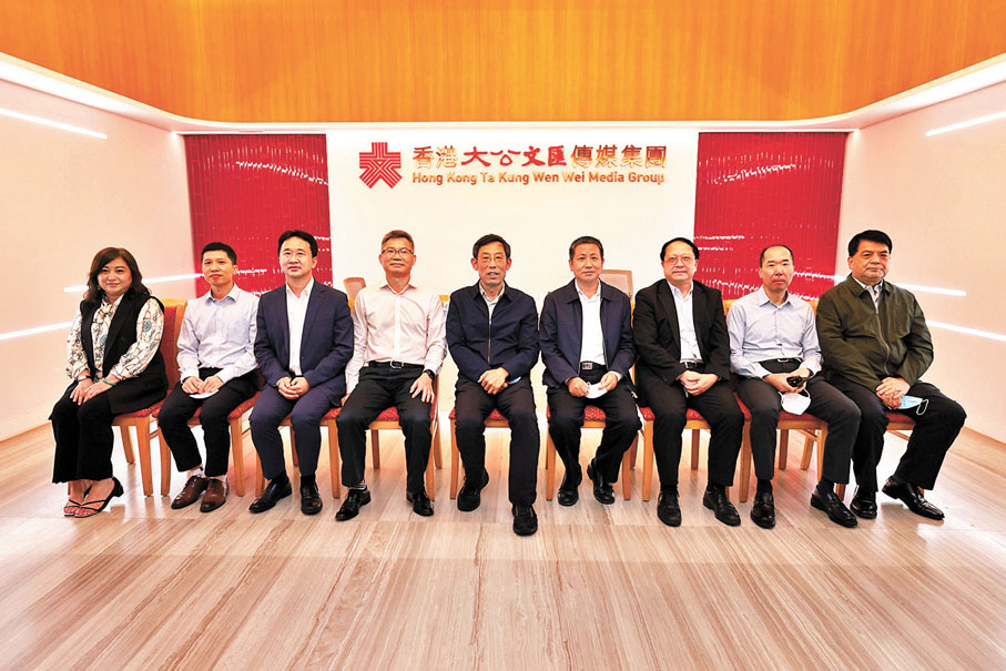 10月21日,中國石化香港代表處總代表蔣振盈(右四)一行到訪香港大公文匯傳媒集團。全國政協委員、香港大公文匯傳媒集團董事長姜在忠(右五)向中石化香港代表處領導一行介紹了《大公報》、《文匯報》的歷史,以及大公文匯傳媒集團強化兩報定位、推動媒體融合、發展新媒體,提升媒體服務性和傳播力、影響力的工作情況。