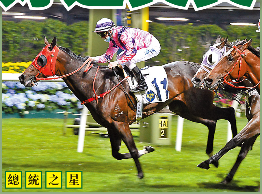 【1】第五班、一六五○米。「總統之星」(圖11號)近七場六次跑入前四名,上仗初出跑第二只不敵再出升上四班再贏的「皆大開心」,強手去後有力坐正。「爪皇烈焰」上季同程一勝多位足證寶刀未老,今季操好上陣肯定不會久等。「信心滿滿」四班不足五班有餘,落班立即報跑勝途,馬房部署見明刀明槍。「好友無敵」上季谷草同程三十六分贏馬,今季隨時好夢重溫,可當攔路虎。「正義駒」前仗初出田草千六跑第三,遲熟馬漸入佳境,轉場上陣賺點卡士。