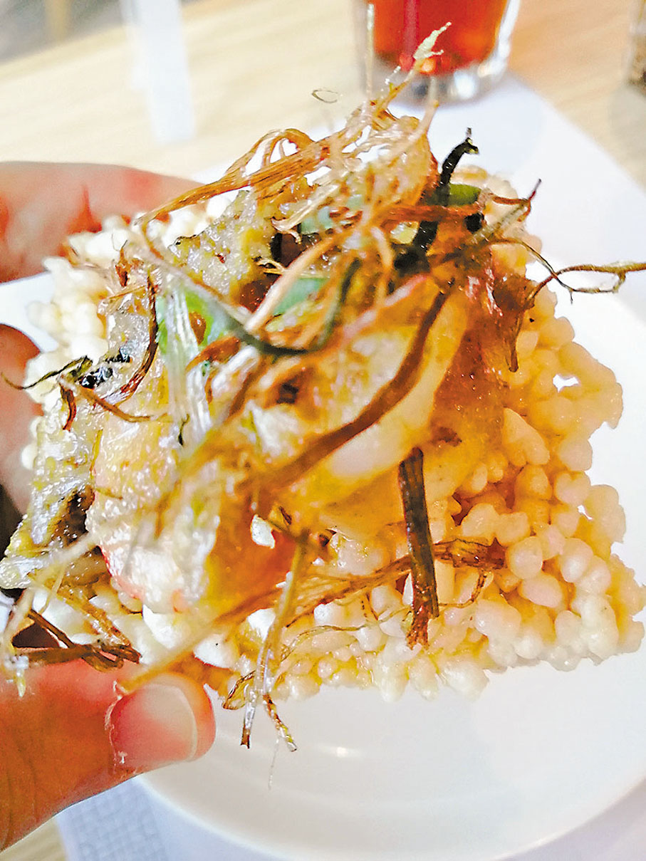 翡翠的拉麵師傅現場特製蘭州拉麵,毛細麵可謂是蘭州拉麵中最幼細的一號麵條,師傅現場即叫即拉,以保新鮮。「蟹粉拌毛細麵」是麵條煮好後隨即拌以足1.5両蟹粉及即炸葱油,讓每根麵條都沾滿鮮香蟹粉滋味。皇牌「蟹粉蝦球鍋巴」:香脆可口的即炸鍋巴配上足料1.5両蟹粉及爽口彈牙蝦球,每一口都能感受到蟹粉及蝦球的鮮美!蟹粉滑溜,鍋巴香脆,一剛一柔甚為匹配,絕對是「蟹粉們」的必食之選。●採、攝:寧寧