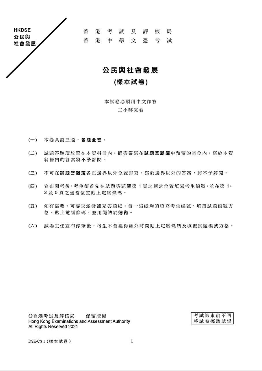 改革後的公民科課程注重建立知識基礎,並更聚焦講解「一國兩制」下香港與國家的關係,同時讓學生了解世界的發展;而2024年起該科文憑試只設必答題考卷,成績則分為「達標」及「不達標」兩級。考評局今年7月已公布首份公民科樣本試卷,三條題目分別有關麻疹與「疫苗猶豫」、香港國安法及青少年國家觀念,以及港青與大灣區發展。昨日出爐的評卷參考,則進一步讓師生掌握科目的評核狀況,及如何有效學習正確知識。