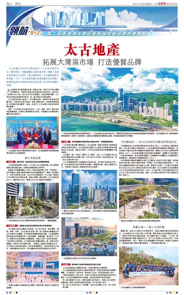 太古地產拓展大灣區市場 打造優質品牌