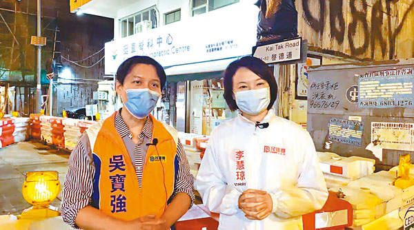 九龍中地區直選參選人、民建聯主席李慧琼昨日與民建聯九龍城區議員吳寶強在九龍城區與市民見面,聆聽市民意見。李慧琼其後在fb直播表示,民建聯會致力要求特區政府加快九龍城舊區重建,改善區內交通擠塞、停車位不足及環境衞生等問題。