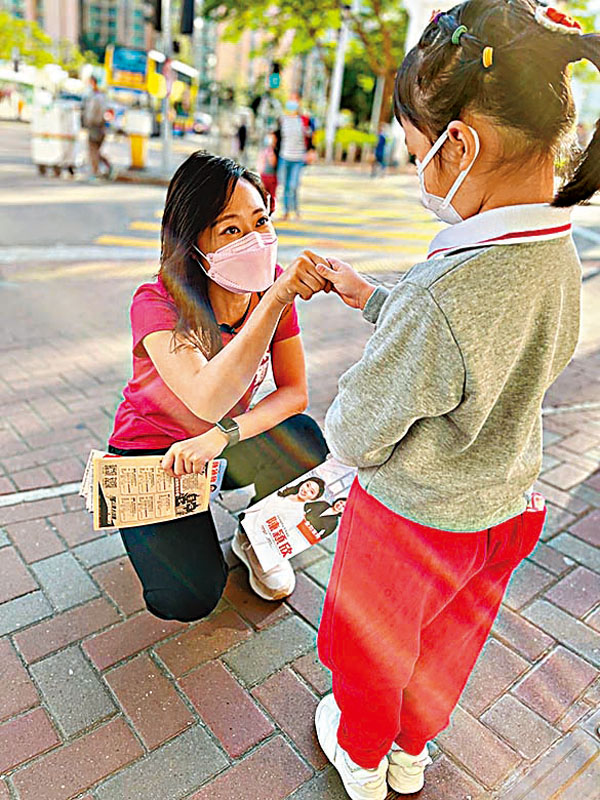 同區另一參選人、工聯會社區主任陳穎欣昨日到葵涌邨爭取市民支持。陳穎欣其後在fb表示,在設街站期間看見了晨光照耀下的葵涌邨,讓她聯想到中央落實香港國安法和完善選舉制度,令議會以至整個社會由亂及治,重現曙光呼籲市民支持她進入立法會,為公義、為基層勞工繼續發聲,「做實事、創新局、同前行!」