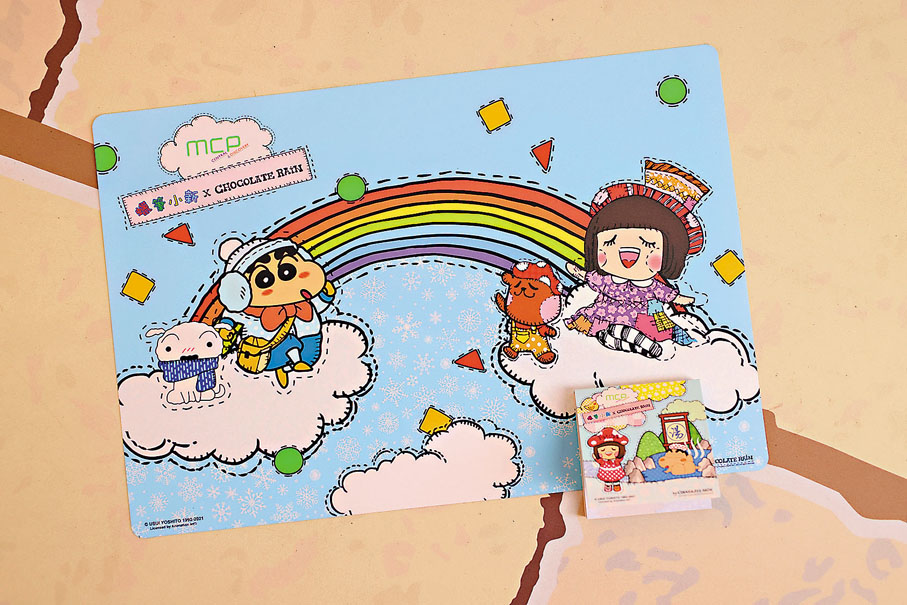 現在,MCP新都城中心特別為香港文匯報讀者送出「蠟筆小新×Chocolate Rain獨家聯乘限量禮品」(餐枱墊及便條貼),有興趣的讀者,請選取喜好禮品,並剪下此印花貼於信封背面,連同HK$10郵資的A4回郵公文袋,郵寄至香港仔田灣海旁道7號興偉中心3樓副刊時尚版收,封面請註明「MCP新都城中心聖誕送禮」,名額各20位。截止日期︰12月1日,先到先得,送完即止。