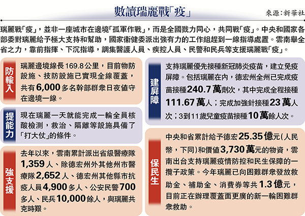 陸林說,瑞麗疫情傳播鏈多,但平均每條鏈3.8天就得到阻斷。「雖然全市還沒有徹底清零,但每條傳播鏈都迅速實現了動態清零。」 ●新華社