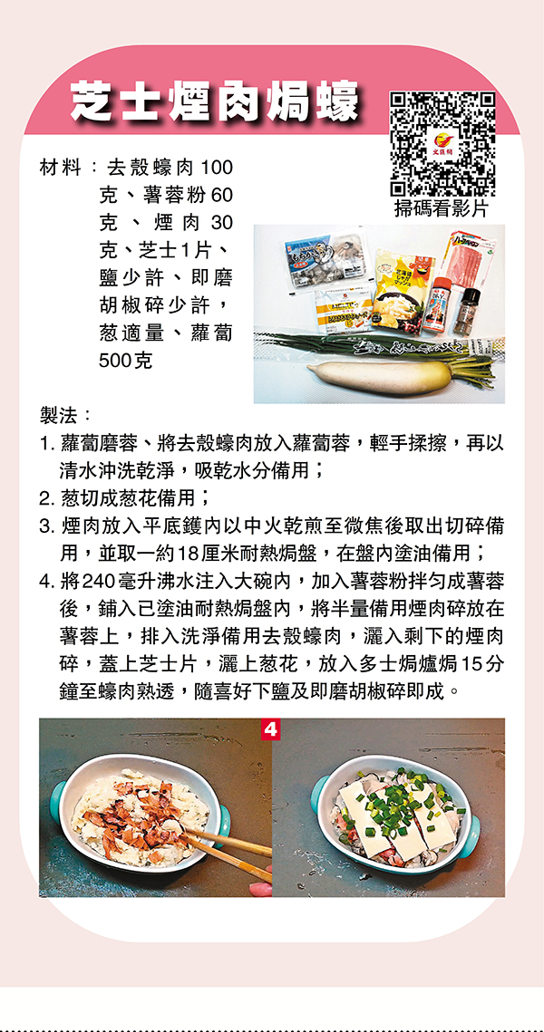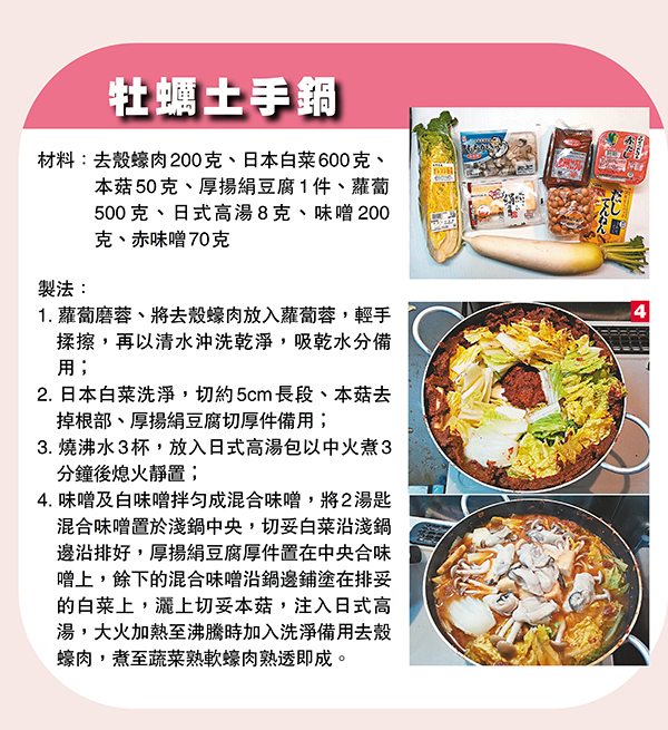 蠔,又叫牡蠣,富含維生素B1、B2、B12等身體必需的營養物質,更特別的是蠔富含鋅、硒及牛磺酸等具有美容和抗衰老效果,因此不論男女吃適量的蠔都能達至養生的功效。而且,中國人經常說不時不食,冬春之間就是蠔最豐腴的季節,美食界又有一種說法是,在英文沒有「R」字母的月份(5月至8月)不要吃蠔,換句話說現在正是最適合吃蠔的季節。今期,就用三道「蠔」的菜式來跟大家分享。