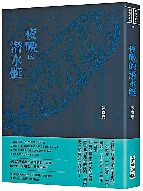 《亞洲週刊》2020年度十大小說之一。《夜晚的潛水艇》是陳春成的首部短篇小說集。九個故事,筆鋒遊走於舊山河與未知宇宙間,以瑰奇飄揚的想像、溫厚清幽的筆法,在現實與幻境間劈開多條秘密的通道:海底漫遊的少年、深山遺落的古碑、彌散入萬物的字句、雲彩修剪站、鑄劍與釀酒、鐵幕下的薩克斯、藍鯨內的演奏廳……陳春成創作的主角們,身體都潛伏着夜行性動物的習性,他們皆善於躲藏,他們深信值得人沉迷一生的事情太多了,每個洞穴都充滿誘惑。他撰寫的每篇小說幾乎都以古典文學作為基調,再澆灌以現代手法,融會後撰寫出迷人的文學。